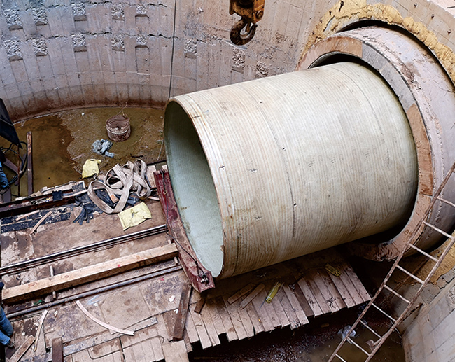 擁有國(guó)際領(lǐng)先水平的玻璃纖維增強(qiáng)塑料夾砂管(連續(xù)纏繞工藝)生產(chǎn)線 5條,年產(chǎn)管道6萬噸。